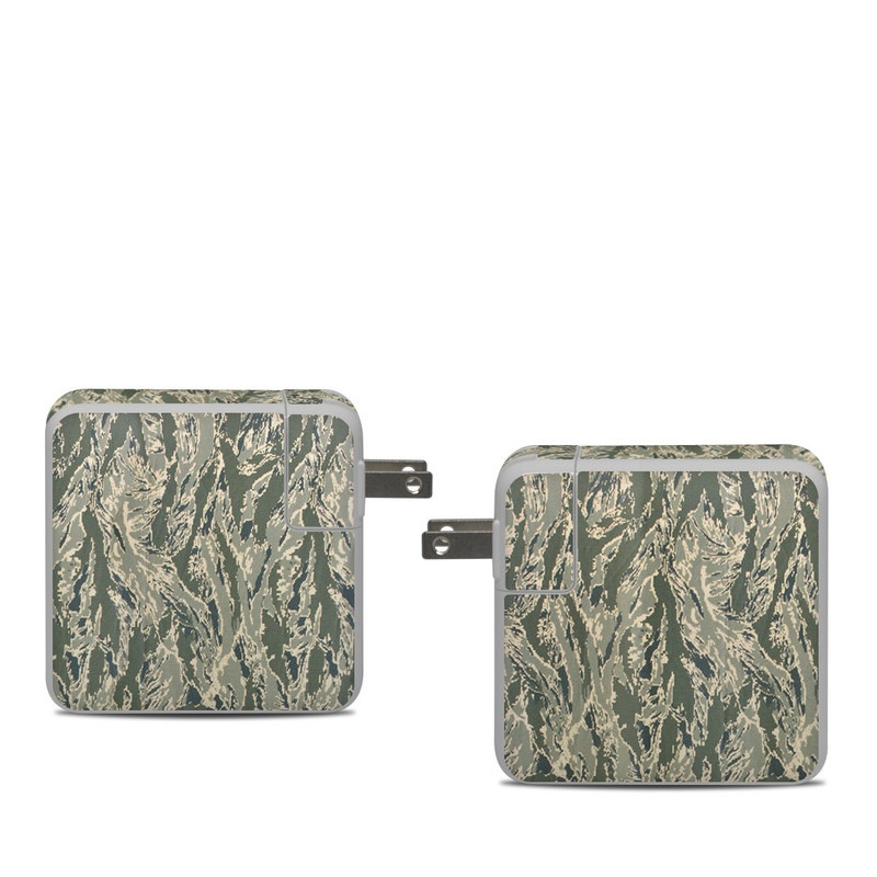 iStyles Apple 61W USB-C Power Adapter Skin design of Pattern, Grass, Plant, with gray, green colors, and tagged with military, lookslike, patterns.