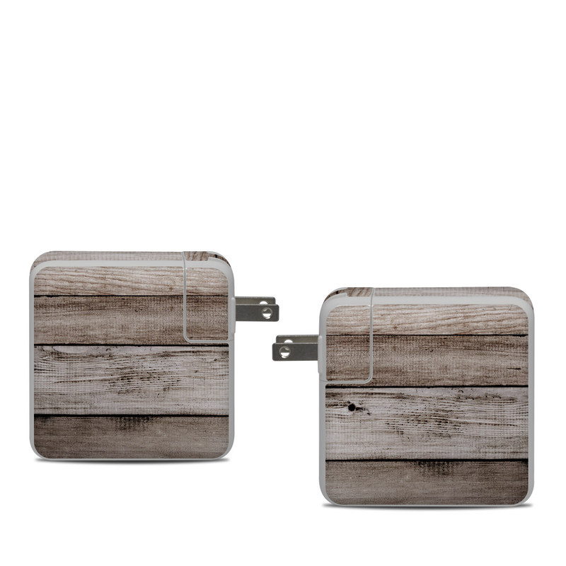 iStyles Apple 61W USB-C Power Adapter Skin design of Wood, Plank, Wood stain, Hardwood, Line, Pattern, Floor, Lumber, Wood flooring, Plywood, with brown, black colors, and tagged with lookslike, patterns, office.