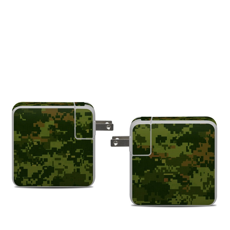 iStyles Apple 61W USB-C Power Adapter Skin design of Military camouflage, Green, Pattern, Uniform, Camouflage, Clothing, Design, Leaf, Plant, with green, brown colors, and tagged with military, lookslike, patterns.