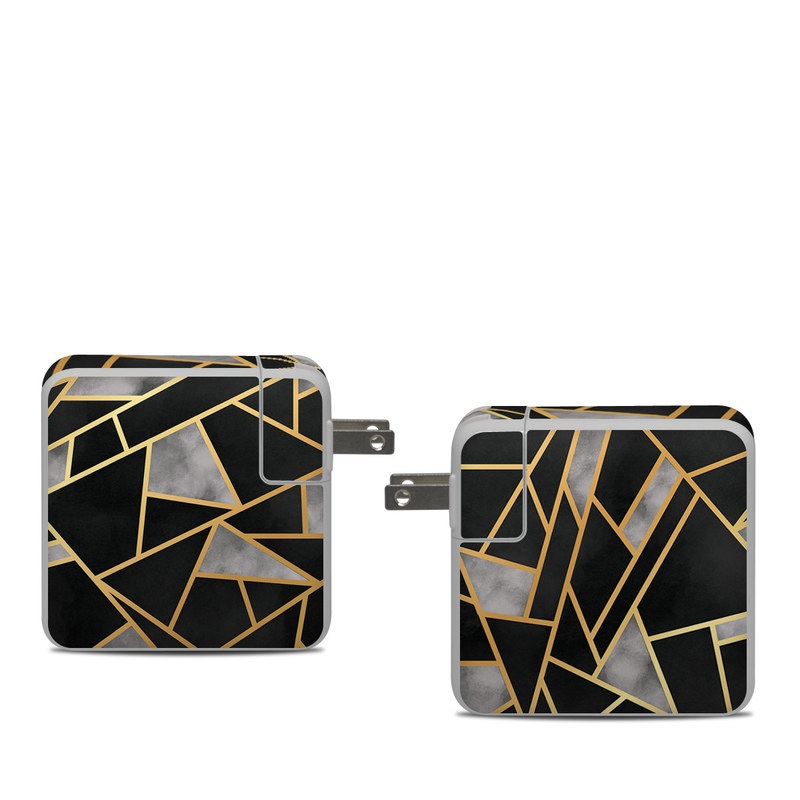 iStyles Apple 61W USB-C Power Adapter Skin design of Pattern, Triangle, Yellow, Line, Tile, Floor, Design, Symmetry, Architecture, Flooring, with black, gray, yellow colors, and tagged with patterns.