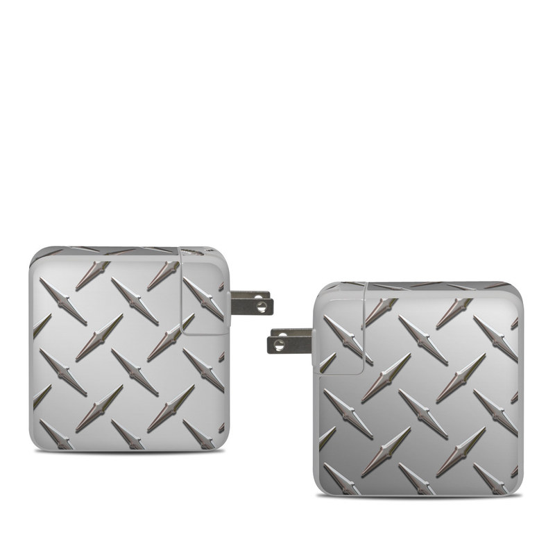 iStyles Apple 61W USB-C Power Adapter Skin design of Pattern, Metal, Line, Design, Steel, Parallel, Tile, Beige, Flooring, with gray colors, and tagged with patterns, urban.