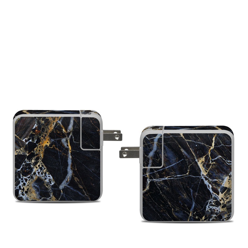 iStyles Apple 61W USB-C Power Adapter Skin design of Black, Yellow, Rock, Brown, Marble, Water, Close-up, Granite, Pattern, Geology, with black, white, orange, gray, yellow colors, and tagged with patterns, lookslike, nature.