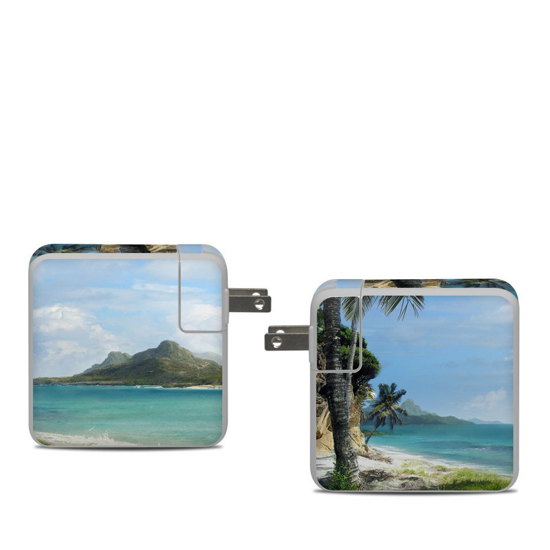 iStyles Apple 61W USB-C Power Adapter Skin design of Body of water, Tropics, Nature, Natural landscape, Shore, Coast, Caribbean, Sea, Tree, Beach, with gray, black, blue, green colors, and tagged with nature, fineart.