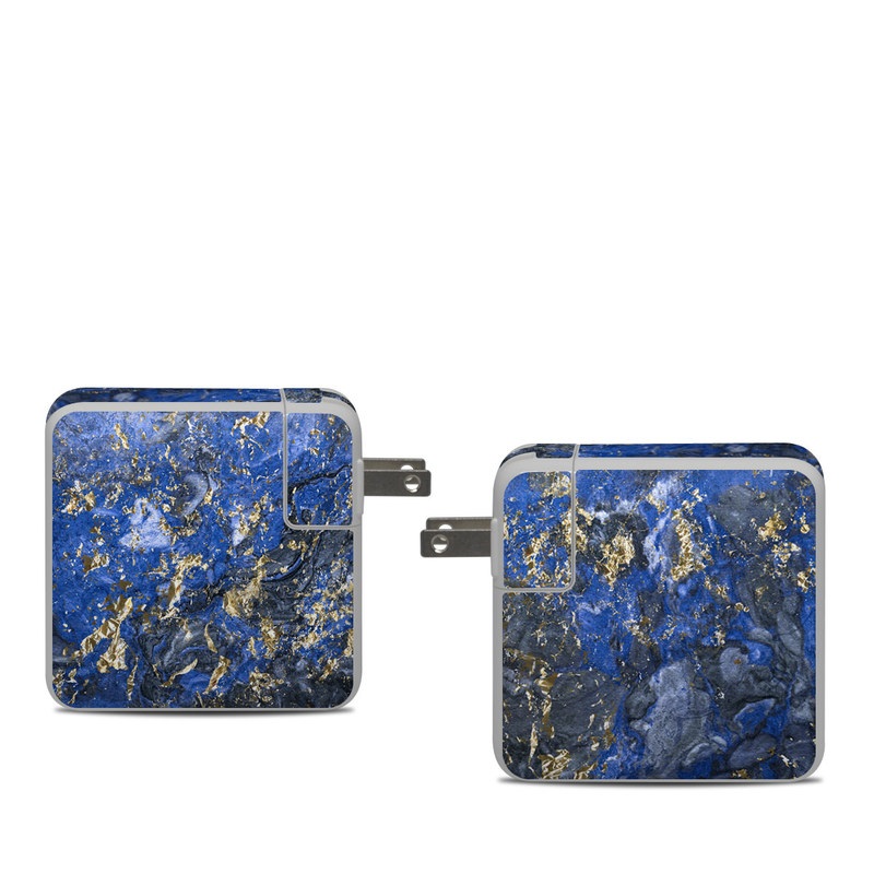 iStyles Apple 61W USB-C Power Adapter Skin design of Blue, Water, Cobalt blue, Rock, Painting, Geology, Electric blue, Mineral, Pattern, Acrylic paint, with black, blue, yellow, white, gray colors, and tagged with patterns, lookslike, nature.