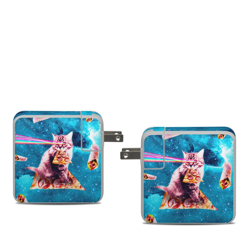 iStyles Apple 61W USB-C Power Adapter Skin design of Illustration, Organism, Graphic design, Art, Space, Fictional character, Extreme sport, Graphics, with blue, white, gray, yellow, red, orange colors, and tagged with space, animals, fantasy, animals, funny, galaxy, lasers, random, space, weird.