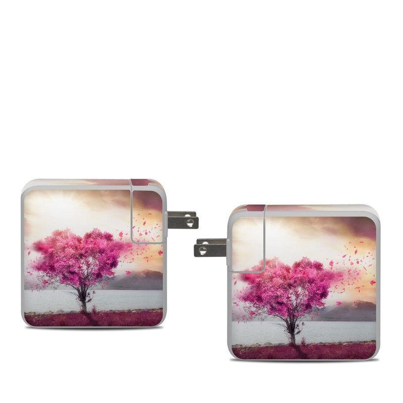 iStyles Apple 61W USB-C Power Adapter Skin design of Sky, Nature, Natural landscape, Pink, Tree, Spring, Purple, Landscape, Cloud, Magenta, with pink, yellow, blue, black, gray colors, and tagged with nature, photos, bright, landscape, nature, outdoors, photo, photography, tree, whimsical.