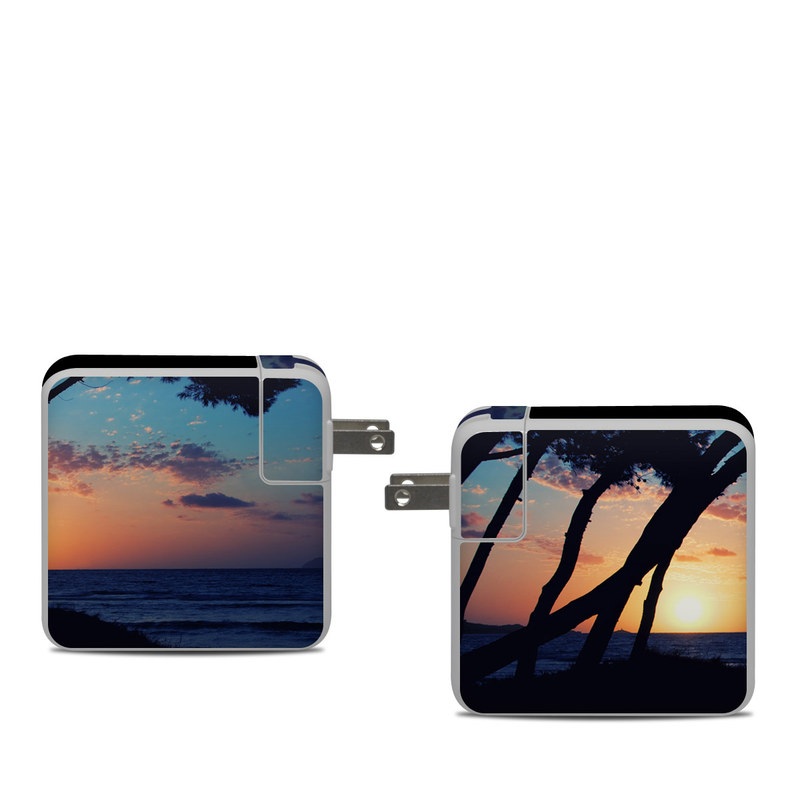 iStyles Apple 61W USB-C Power Adapter Skin design of Sky, Horizon, Nature, Tree, Sunset, Sunrise, Ocean, Sea, Natural landscape, Afterglow, with black, gray, blue, green, red, pink colors, and tagged with nature, photos.