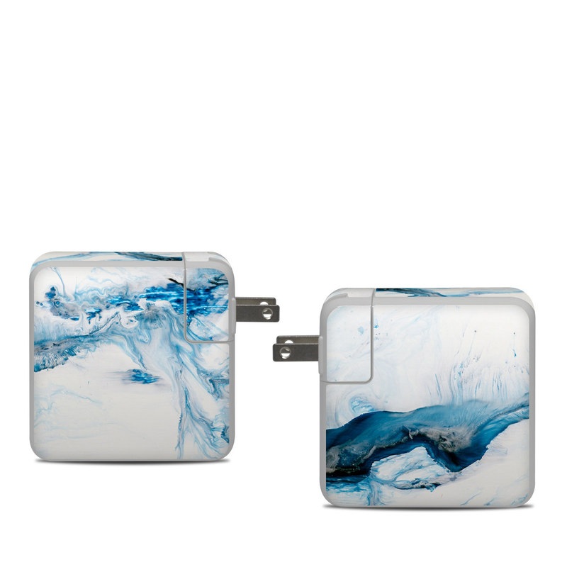 iStyles Apple 61W USB-C Power Adapter Skin design of Glacial landform, Blue, Water, Glacier, Sky, Arctic, Ice cap, Watercolor paint, Drawing, Art, with white, blue, black colors, and tagged with patterns, lookslike, nature.