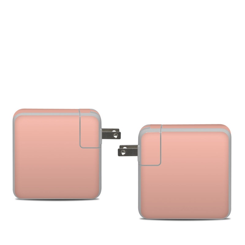 iStyles Apple 61W USB-C Power Adapter Skin design of Orange, Pink, Peach, Brown, Red, Yellow, Material property, Font, Beige, with orange, yellow, white colors, and tagged with solidcolors, orange, pink, white, fruit.