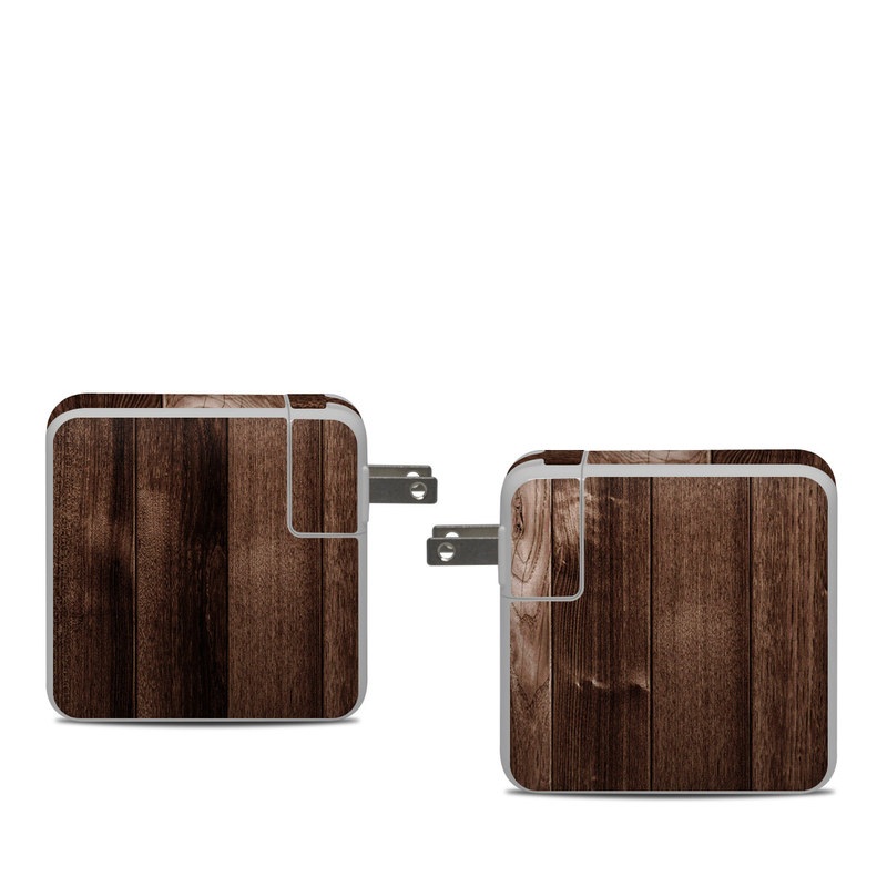 iStyles Apple 61W USB-C Power Adapter Skin design of Wood, Brown, Wood stain, Plank, Hardwood, Wood flooring, Line, Pattern, Floor, Flooring, with brown colors, and tagged with lookslike, patterns, office.