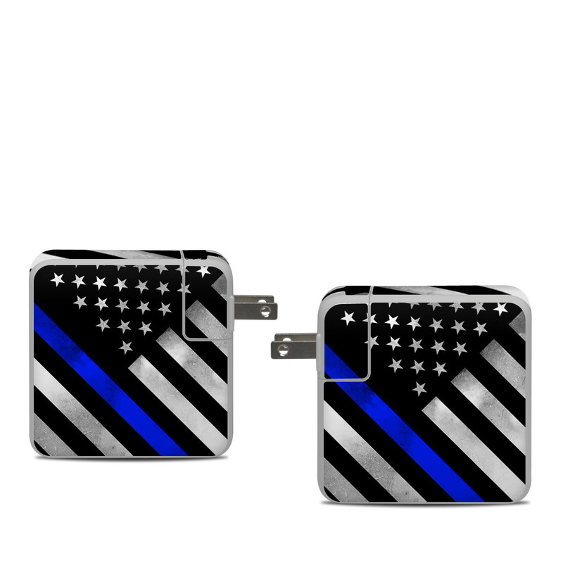 iStyles Apple 61W USB-C Power Adapter Skin design of Flag of the united states, Flag, Cobalt blue, Pattern, Line, Black-and-white, Design, Monochrome, Electric blue, Parallel, with black, white, gray, blue colors, and tagged with flags, signs, firstresponder, flag, police, rescue, thinline.