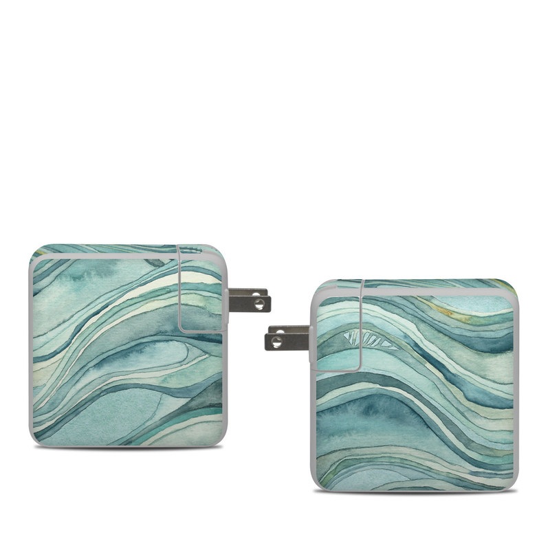 iStyles Apple 61W USB-C Power Adapter Skin design of Aqua, Blue, Pattern, Turquoise, Teal, Water, Design, Line, Wave, Textile, with gray, blue colors, and tagged with patterns.