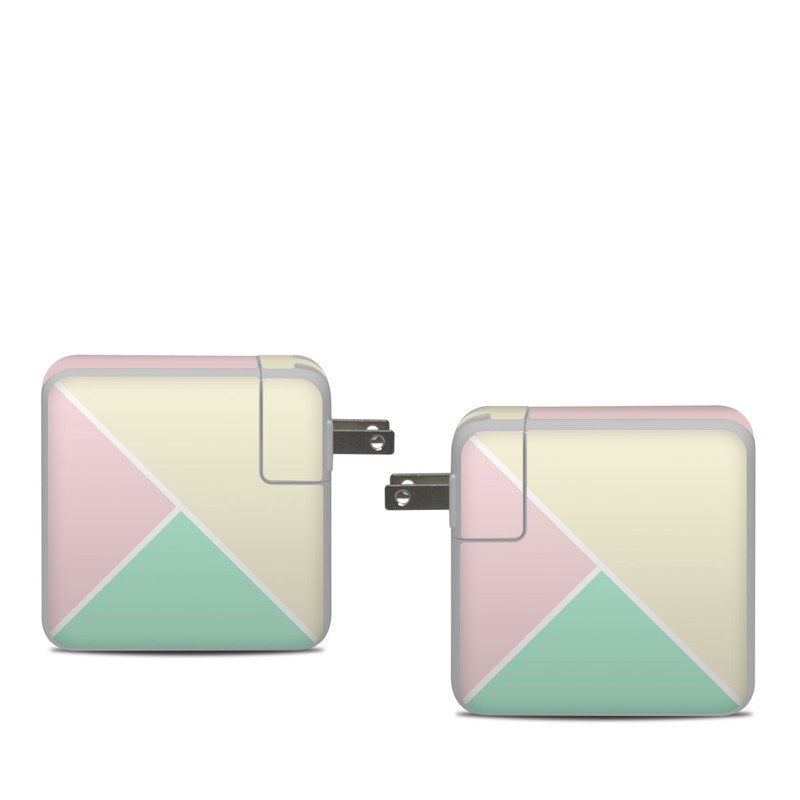 iStyles Apple 61W USB-C Power Adapter Skin design of Green, Aqua, Turquoise, Blue, Pink, Yellow, Line, Teal, Pattern, Design, with yellow, pink, green colors, and tagged with patterns, block, blocking, color, colorblock, geometric, shape, simple.