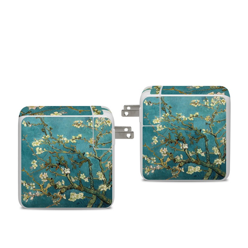 iStyles Apple 96W USB-C Power Adapter Skin design of Tree, Branch, Plant, Flower, Blossom, Spring, Woody plant, Perennial plant, with blue, black, gray, green colors, and tagged with flowers, fineart.