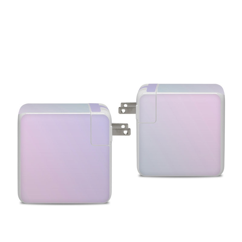 iStyles Apple 96W USB-C Power Adapter Skin design of White, Blue, Daytime, Sky, Atmospheric phenomenon, Atmosphere, Calm, Line, Haze, Fog, with pink, purple, blue colors, and tagged with patterns, colorful, cottoncandy, iridescent, pastels.