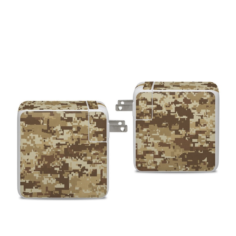 iStyles Apple 96W USB-C Power Adapter Skin design of Military camouflage, Brown, Pattern, Camouflage, Wall, Beige, Design, Textile, Uniform, Flooring, with brown colors, and tagged with patterns, military, army, camo, camouflage, desert, digitalcamo, military.