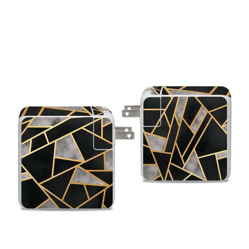 iStyles Apple 96W USB-C Power Adapter Skin design of Pattern, Triangle, Yellow, Line, Tile, Floor, Design, Symmetry, Architecture, Flooring, with black, gray, yellow colors, and tagged with patterns.