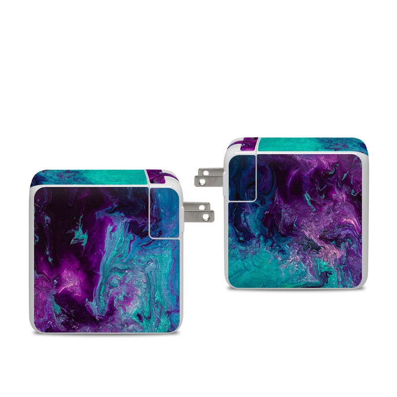 iStyles Apple 96W USB-C Power Adapter Skin design of Blue, Purple, Violet, Water, Turquoise, Aqua, Pink, Magenta, Teal, Electric blue, with blue, purple, black colors, and tagged with abstract, space, galaxy, marbles, milkyway, nebula, space.