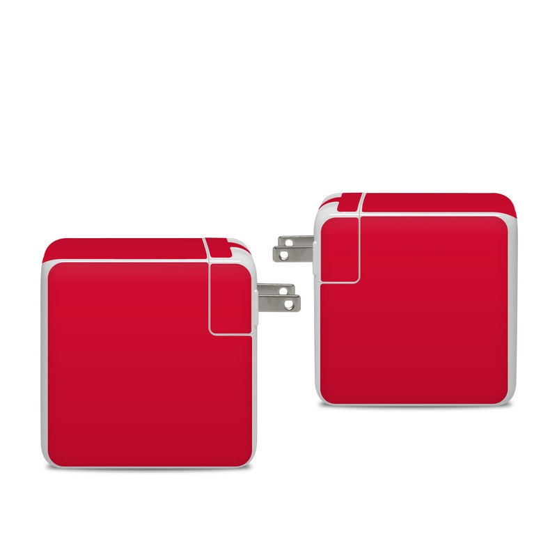 iStyles Apple 96W USB-C Power Adapter Skin design of Red, Pink, Maroon, Purple, Orange, Violet, Magenta, Material property, Font, Peach, with red colors, and tagged with solidcolors, vitality, status, wealth, intense, emotions, anger, sacrifice, danger, evil, destruction, love, passion, sexuality.