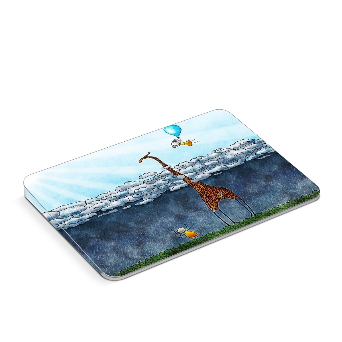 iStyles Apple Magic Trackpad Skin design of Giraffe, Sky, Tree, Water, Branch, Giraffidae, Illustration, Cloud, Grassland, Bird, with blue, gray, yellow, green colors, and tagged with animals, nature, objects.