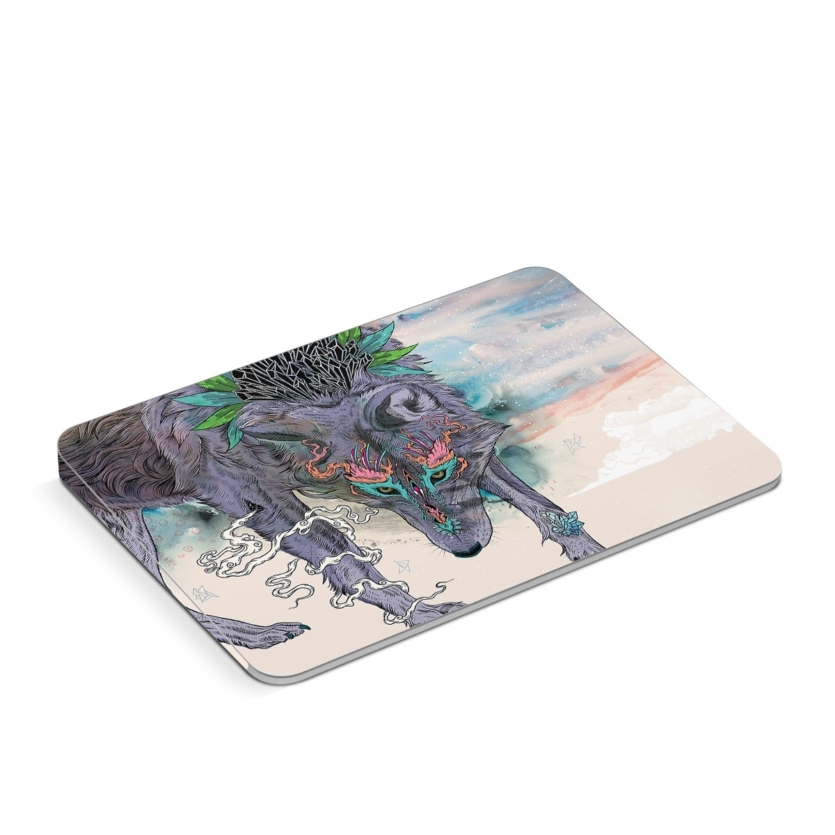 iStyles Apple Magic Trackpad Skin design of Illustration, Boar, Art, Drawing, Fictional character, Sketch, Suidae, with gray, pink, black, blue, yellow colors, and tagged with animals, fantasy, crystals, feathers, gems, magical, space, spirit, tribal, wolf.