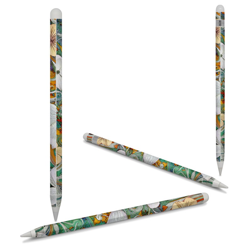 iStyles Apple Pencil Skin design of Flower, Pattern, Plant, Wildflower, Floral design, Petal, Art, Painting, Visual arts, Wallpaper, with gray, black, green, blue, red colors, and tagged with flowers.
