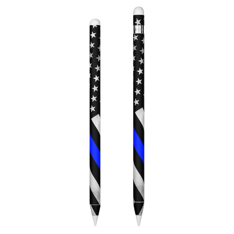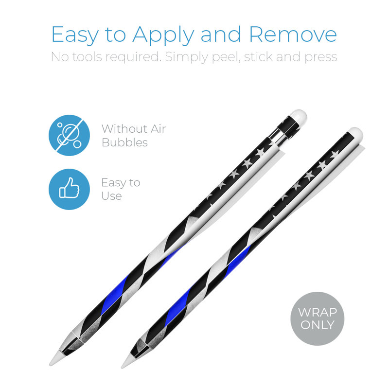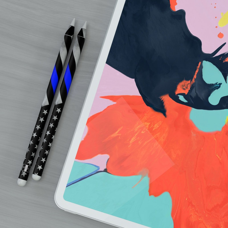 iStyles Apple Pencil Skin design of Flag of the united states, Flag, Cobalt blue, Pattern, Line, Black-and-white, Design, Monochrome, Electric blue, Parallel, with black, white, gray, blue colors, and tagged with flags, signs, firstresponder, flag, police, rescue, thinline.