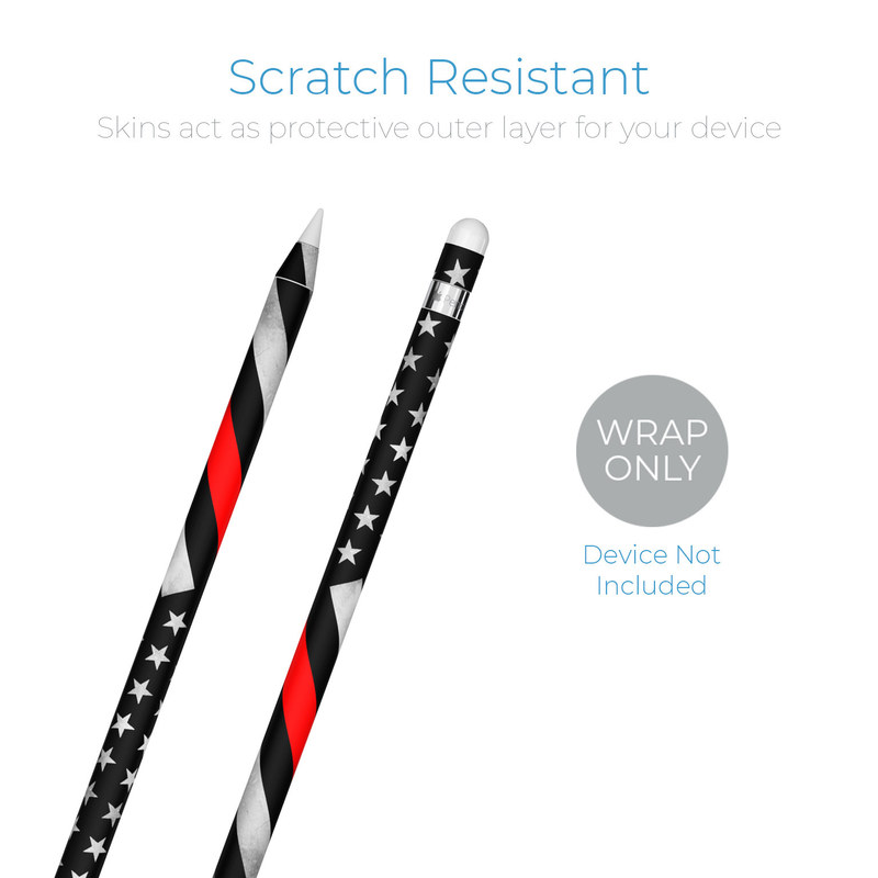 iStyles Apple Pencil Skin design of Flag of the united states, Flag, Line, Black-and-white, Pattern, Flag Day (USA), Veterans day, Independence day, Memorial day, with black, white, gray, red colors, and tagged with flags, signs, fire, firstresponder, flag, rescue, thinline.