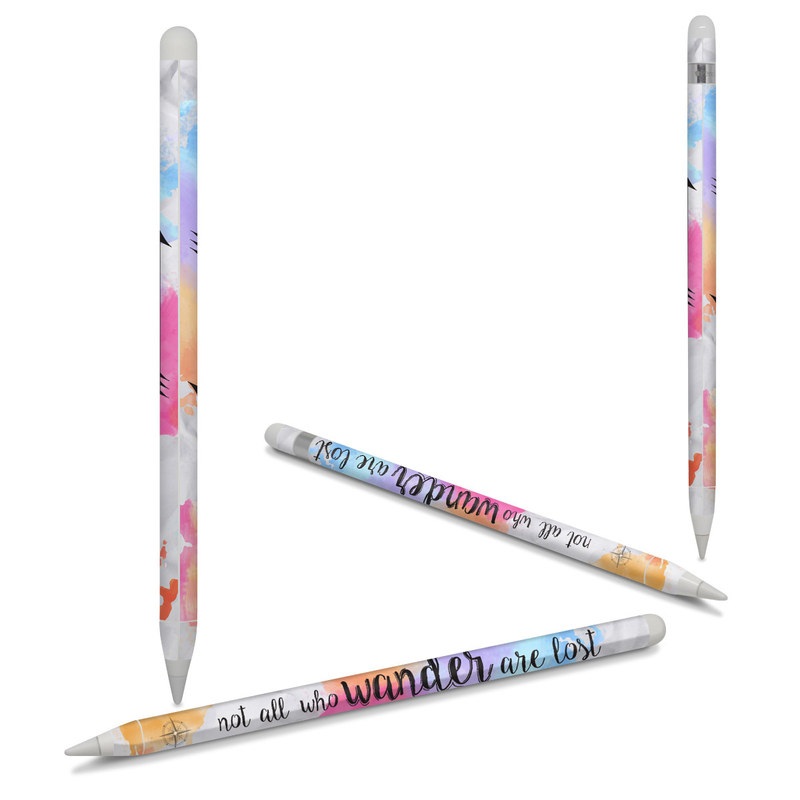 iStyles Apple Pencil Skin design of Font, Text, Calligraphy, Graphics, with black, white, orange, pink, red, blue, purple, yellow colors, and tagged with signs, maps.