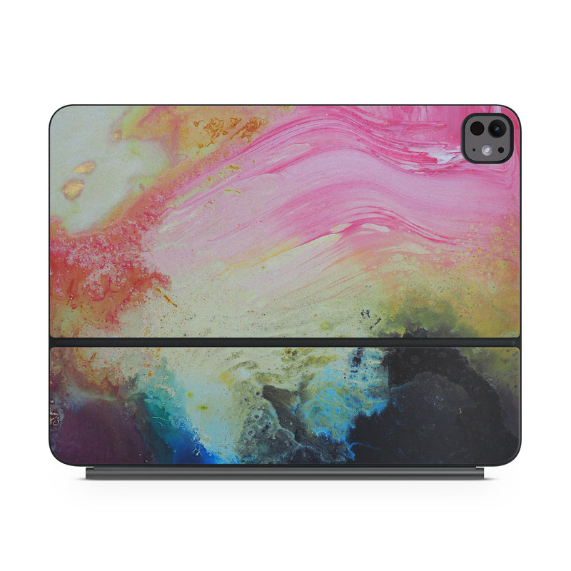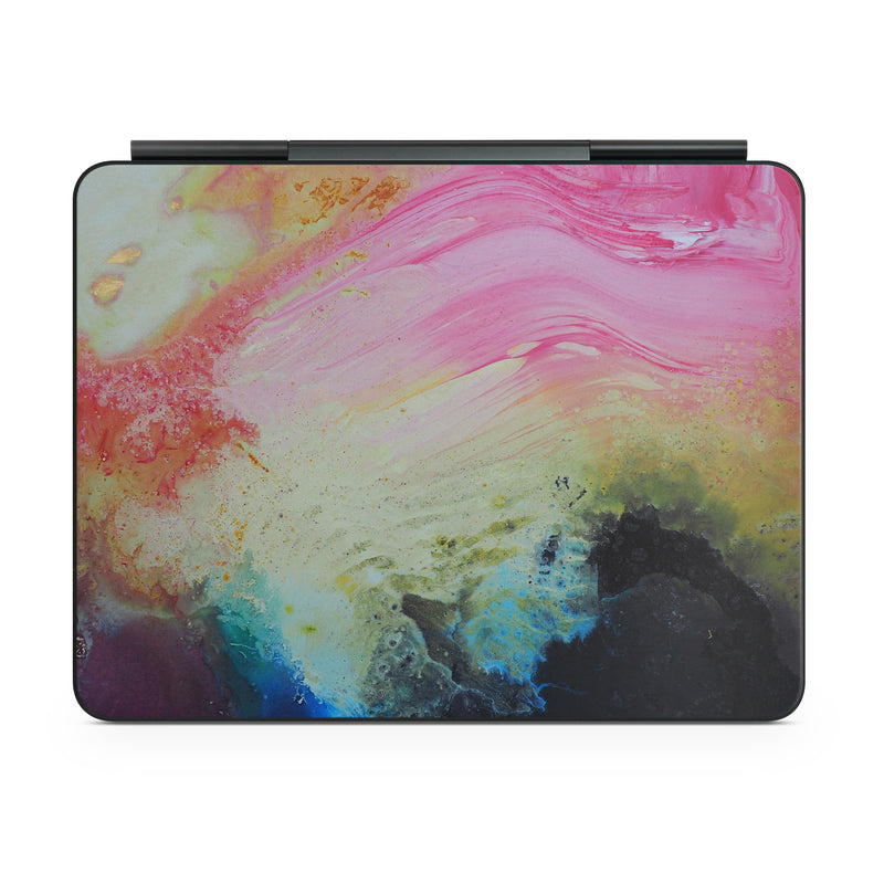 iStyles Magic Keyboard for iPad Series Skin design of Painting, Modern art, Acrylic paint, Art, Pink, Watercolor paint, Visual arts, Paint, Artwork, Magenta, with pink, yellow, orange, blue, black, red colors, and tagged with abstract, abstract, creativebynature, fineart, lisalipsett, painting.