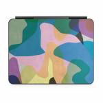 iStyles Magic Keyboard for iPad Series Skin design of Azure, Paint, Textile, Organism, Art, Painting, Aqua, Font, Rectangle, Tints and shades, with blue, green, pink, yellow, orange, purple, gray colors, and tagged with patterns, abstract, abstract, camo, camouflage, color, modern, paint, painting, pattern.