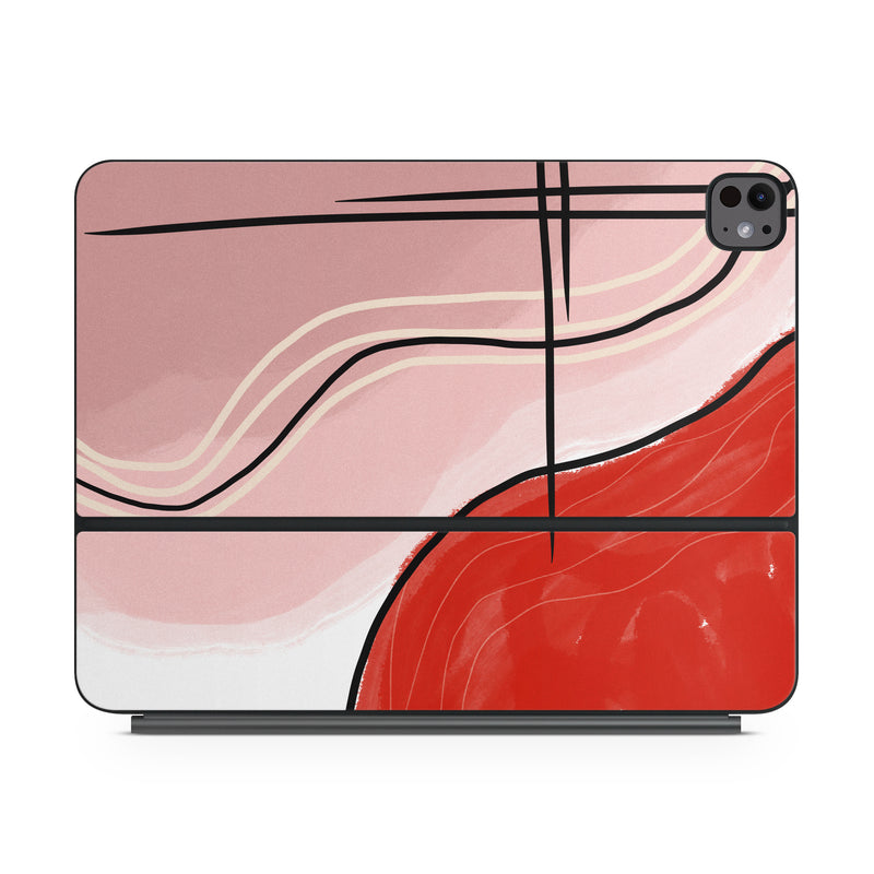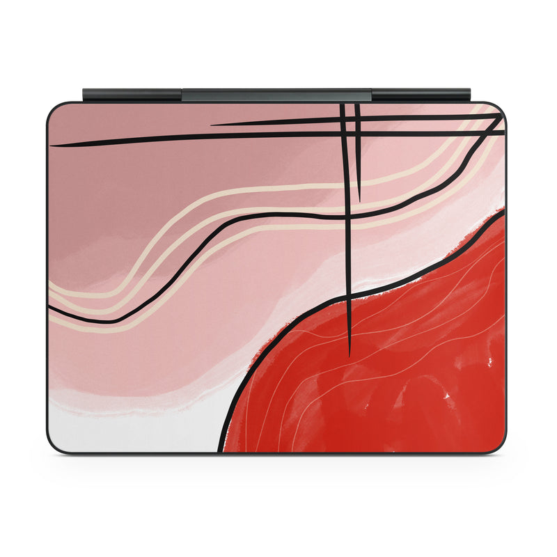 iStyles Magic Keyboard for iPad Series Skin design of Red, Line, Lip, Material Property, Mouth, Illustration, Graphics, Liquid, Modern Art, Graphic Design, Art, with white, black, brown, red colors, and tagged with abstract, abstract, bohemian, boho, illustration.