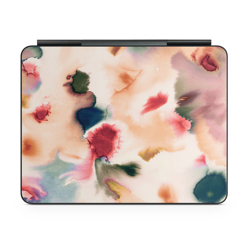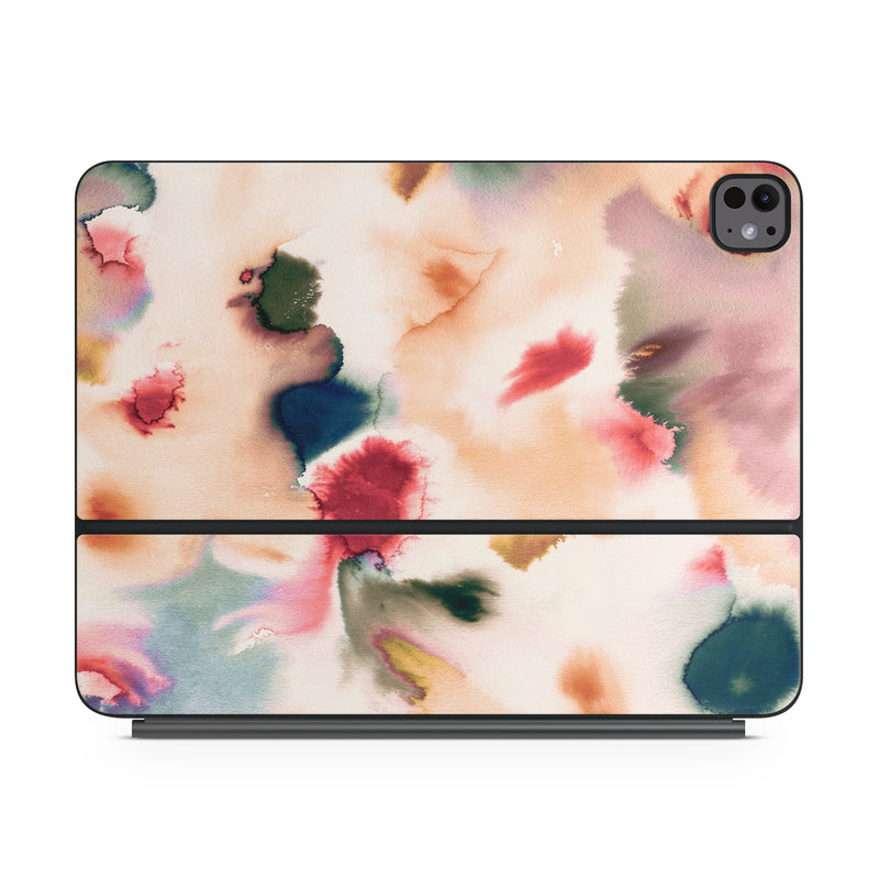 iStyles Magic Keyboard for iPad Series Skin design of Petal, Pink, Creative arts, Plant, Tints and shades, Art, Pattern, Porcelain, Close-up, Natural material, with white, blue, red, brown, orange, yellow, green colors, and tagged with patterns, colorful, rainbow, happy.