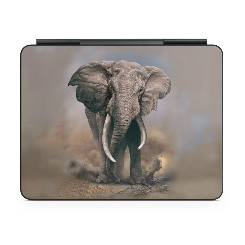iStyles Magic Keyboard for iPad Series Skin design of Elephants and Mammoths, Terrestrial animal, Indian elephant, African elephant, Wildlife, Tusk, Snout, Organism, Working animal, Illustration, with brown, gray, white colors, and tagged with animals, animals, elephant, nature.