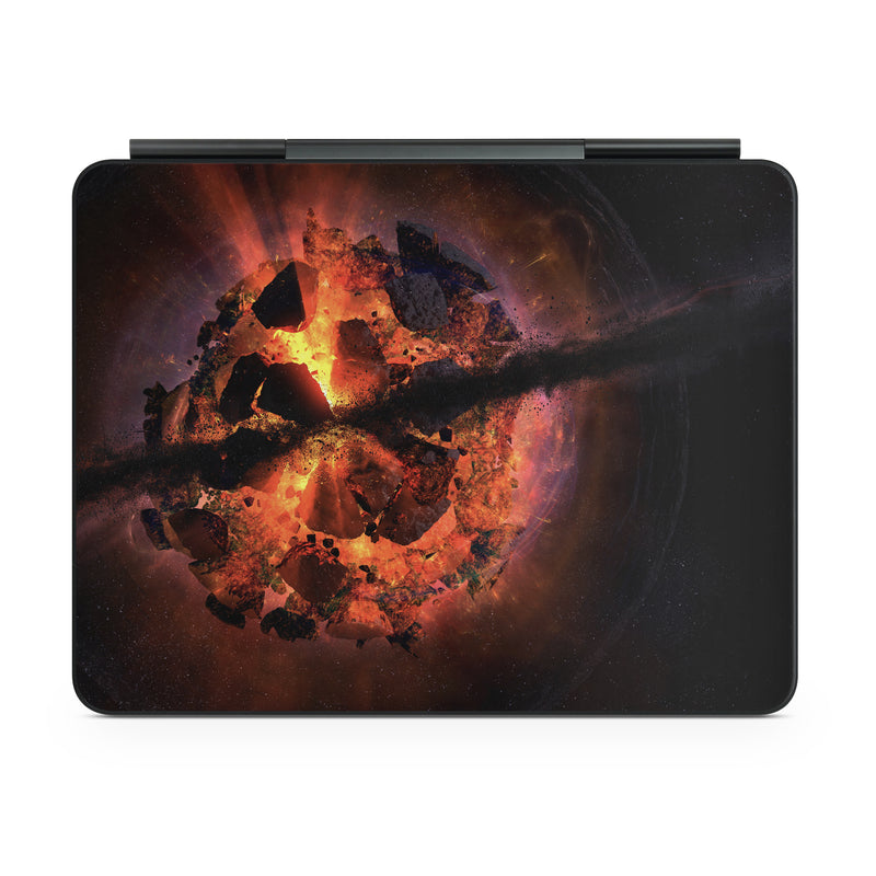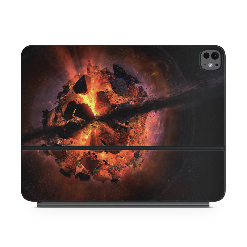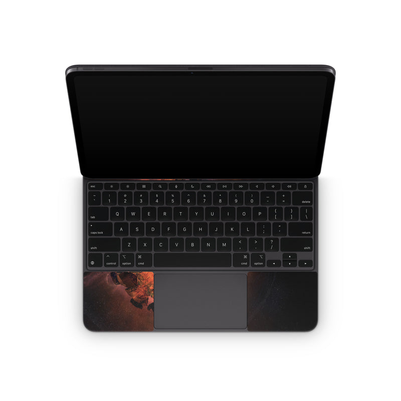 iStyles Magic Keyboard for iPad Series Skin design of Flame, Heat, Fire, Space, Atmosphere, Charcoal, Explosion, Geological phenomenon, Ash, Graphics, with black, red colors, and tagged with space.