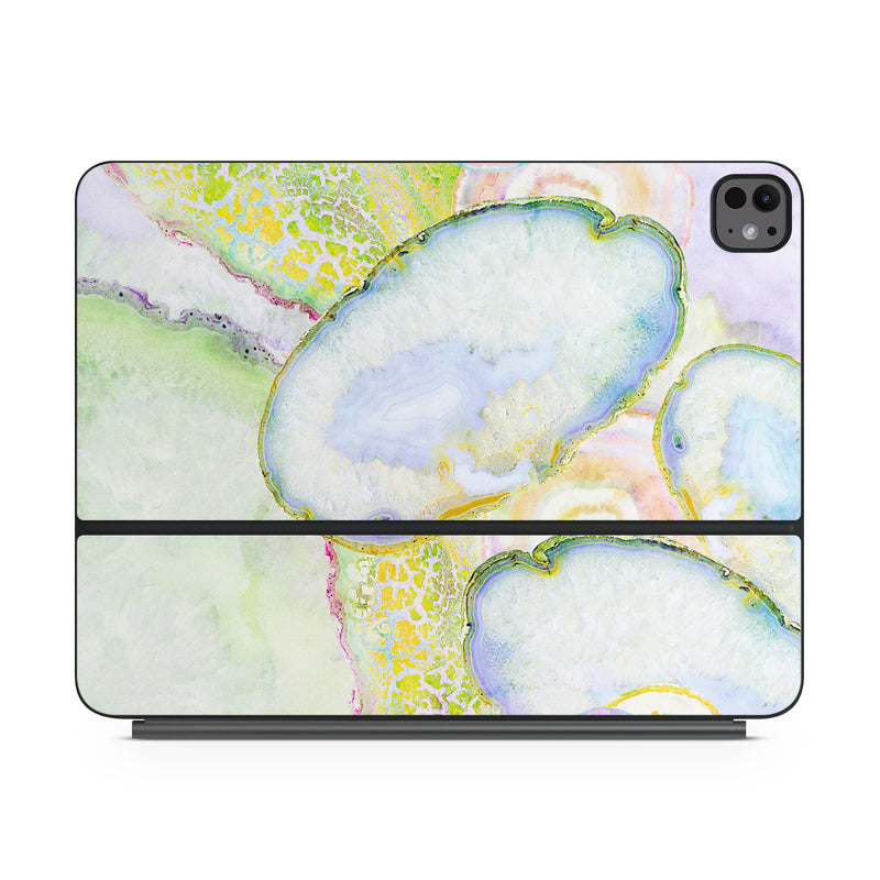 iStyles Magic Keyboard for iPad Series Skin design of Watercolor paint, Illustration, Paint, Child art, Art, with blue, purple, green, yellow, pink colors, and tagged with abstract, nature, objects, agate, gems, nature, opal, rock, stone.