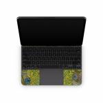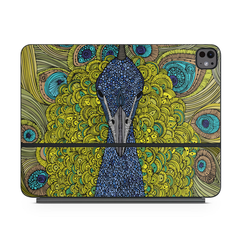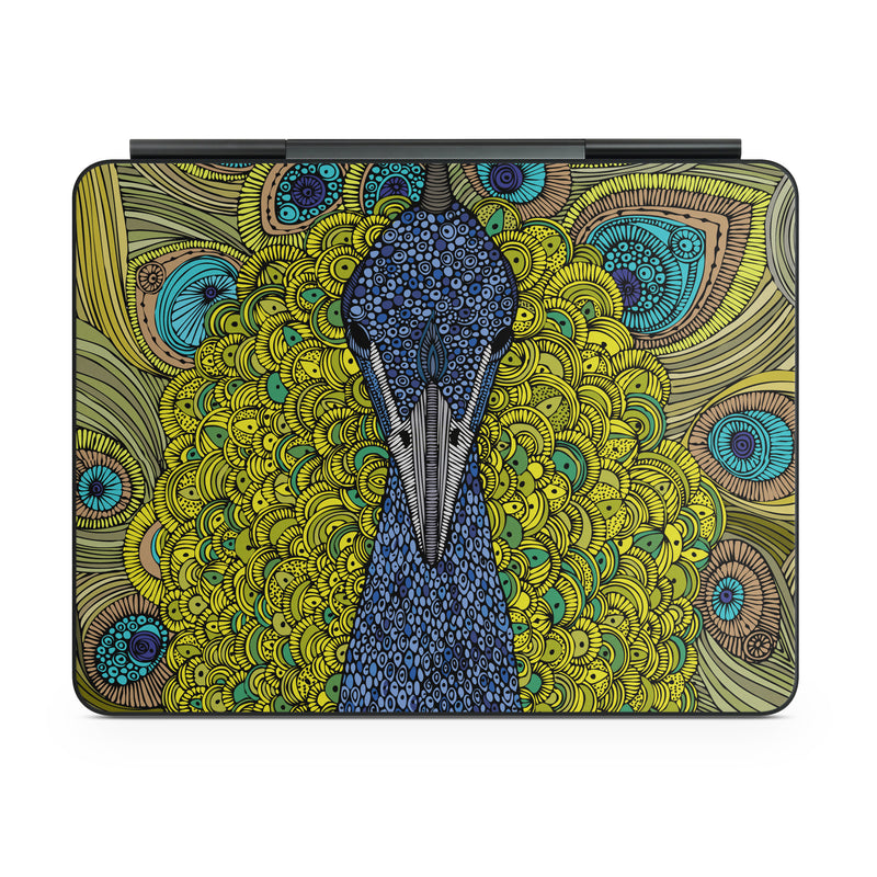 iStyles Magic Keyboard for iPad Series Skin design of Peafowl, Bird, Feather, Pattern, Art, Phasianidae, Galliformes, Design, Psychedelic art, Symmetry, with green, blue, yellow colors, and tagged with animals, patterns, animals, feathers, peacock, feathers.