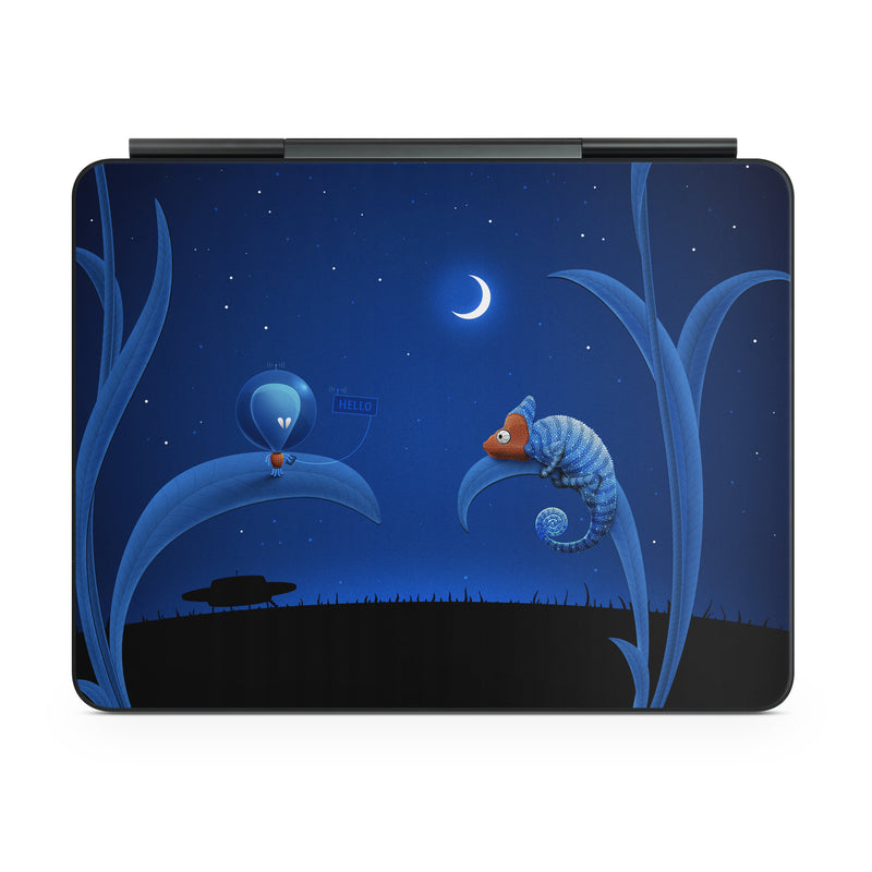 iStyles Magic Keyboard for iPad Series Skin design of Organism, Astronomical object, Space, Illustration, Night, Graphics, with black, blue, orange colors, and tagged with space, fantasy.