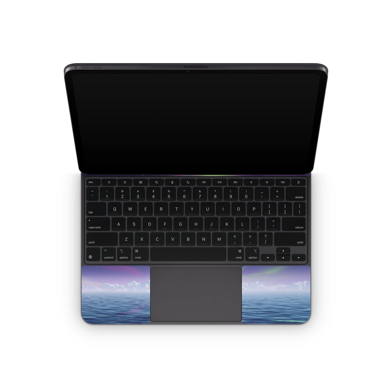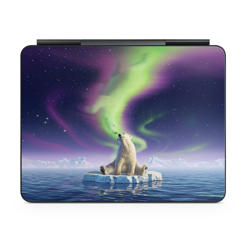 iStyles Magic Keyboard for iPad Series Skin design of Aurora, Sky, Wildlife, Polar bear, Fictional character, with white, blue, green, purple colors, and tagged with animals, nature.