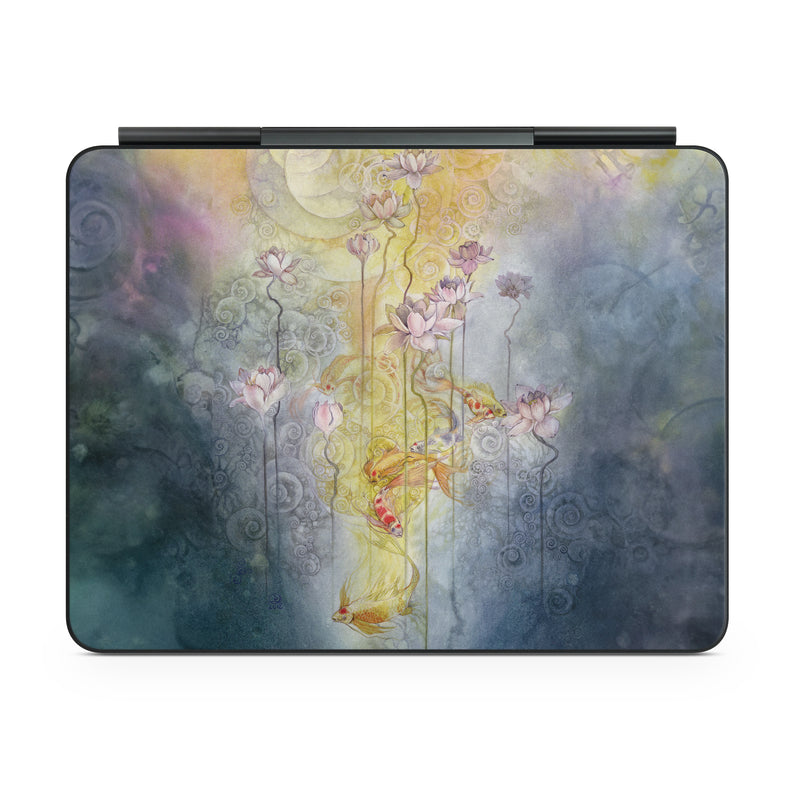 iStyles Magic Keyboard for iPad Series Skin design of Watercolor paint, Painting, Art, Yellow, Flower, Acrylic paint, Floral design, Visual arts, Modern art, Illustration, with blue, red, orange, pink, yellow colors, and tagged with animals, flowers, fish, flowers, lotus.