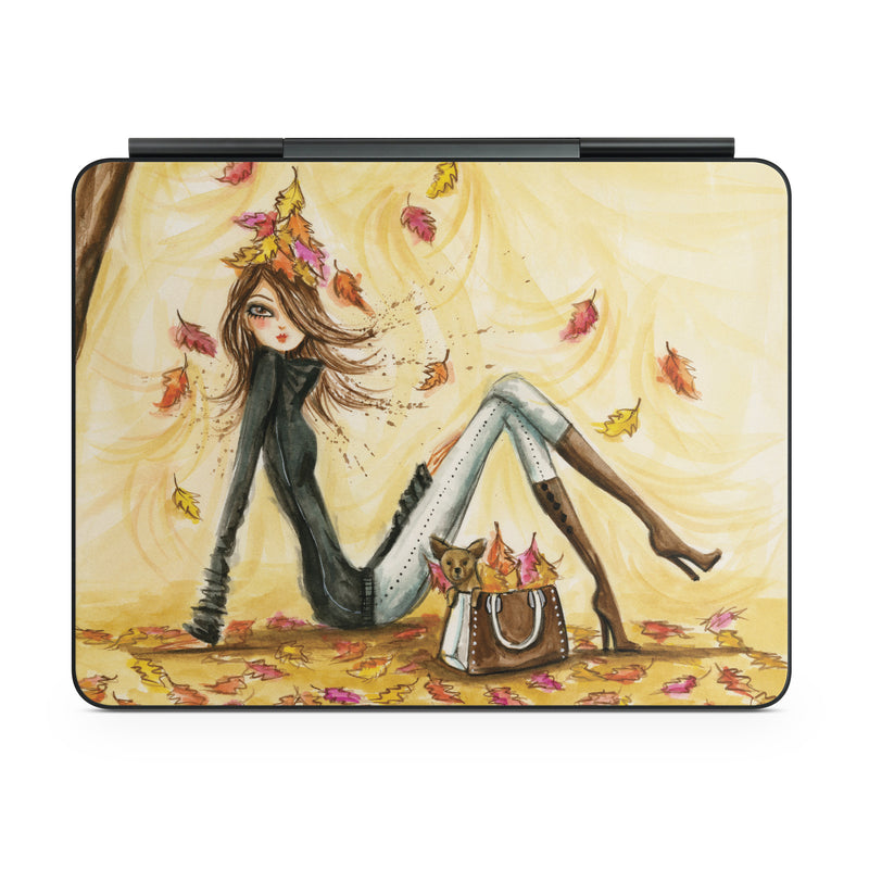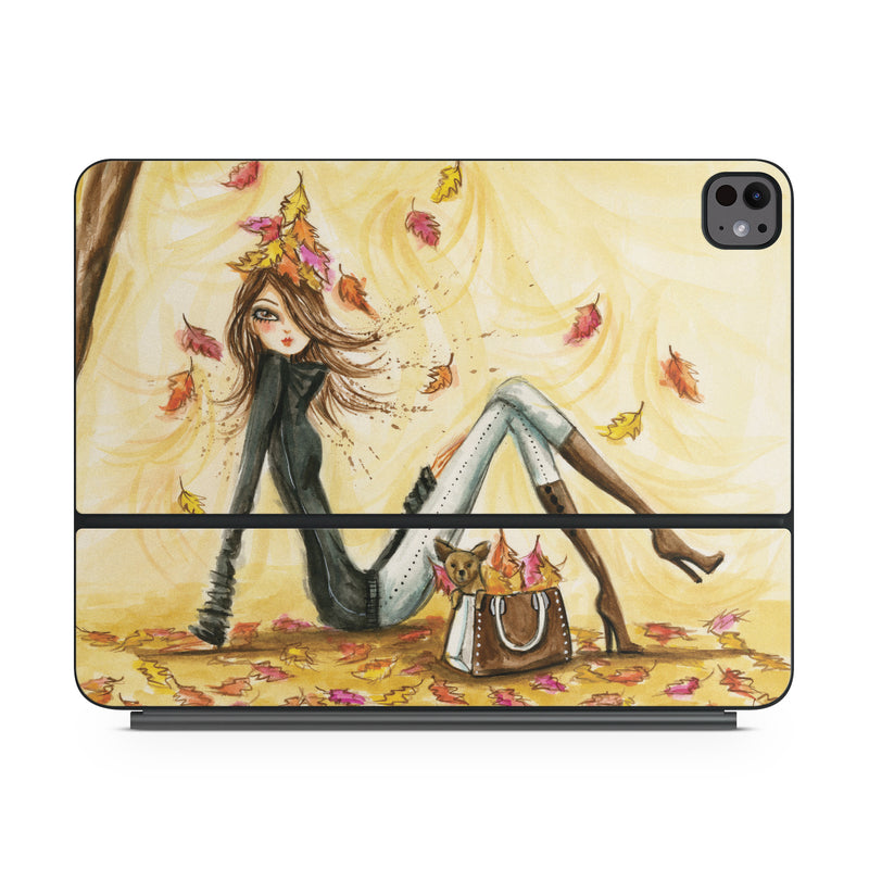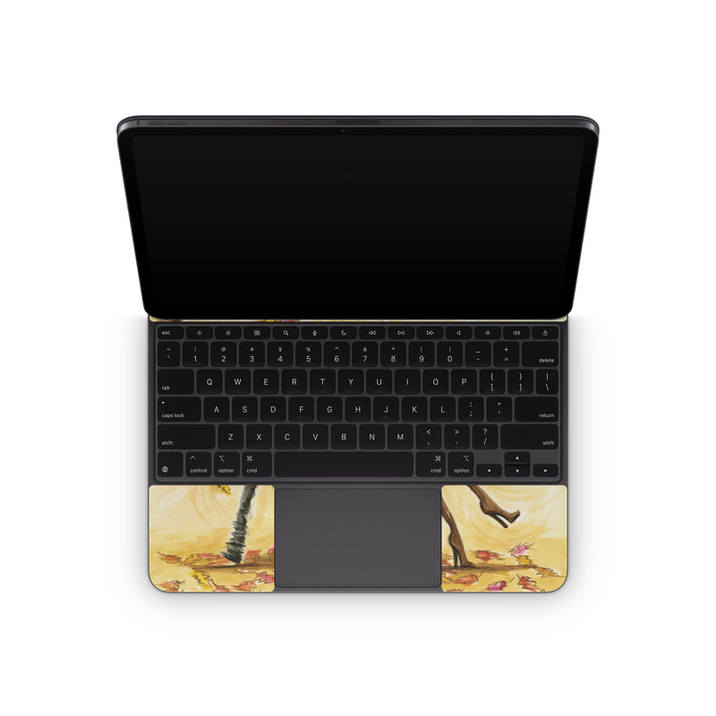 iStyles Magic Keyboard for iPad Series Skin design of Painting, Watercolor paint, Tree, Art, Illustration, Plant, Modern art, Visual arts, Still life, Fictional character, with yellow, red, brown, orange, black, white colors, and tagged with people, nature, objects, fashion.