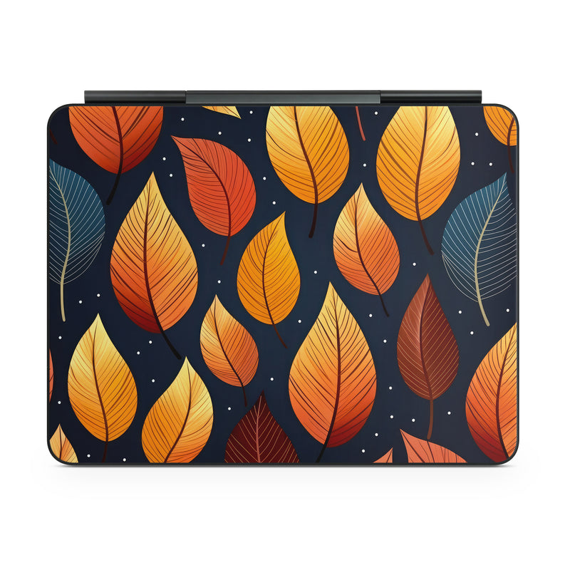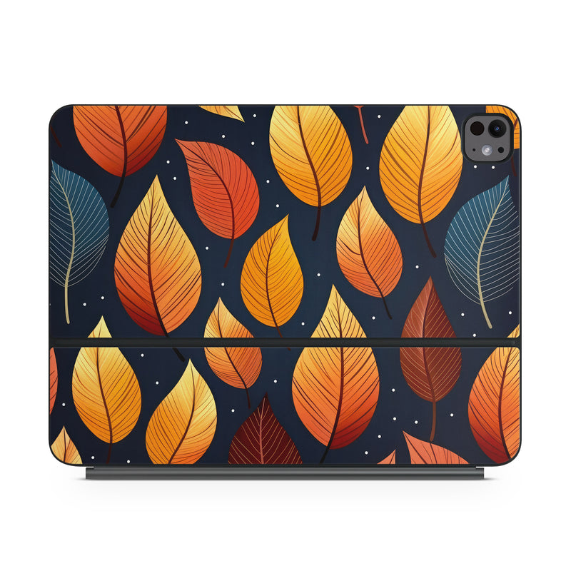 iStyles Magic Keyboard for iPad Series Skin design of Amber, Orange, Lighting, Sunlight, Font, Art, Material property, Symmetry, Wood, Circle, with yellow, orange, black, white, red colors, and tagged with nature, patterns, fall, leaves.