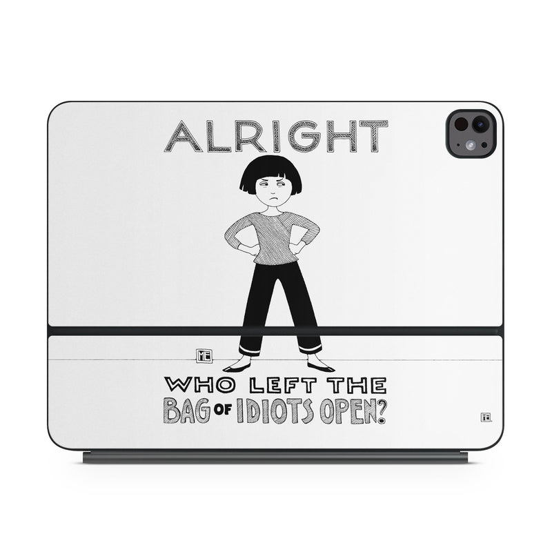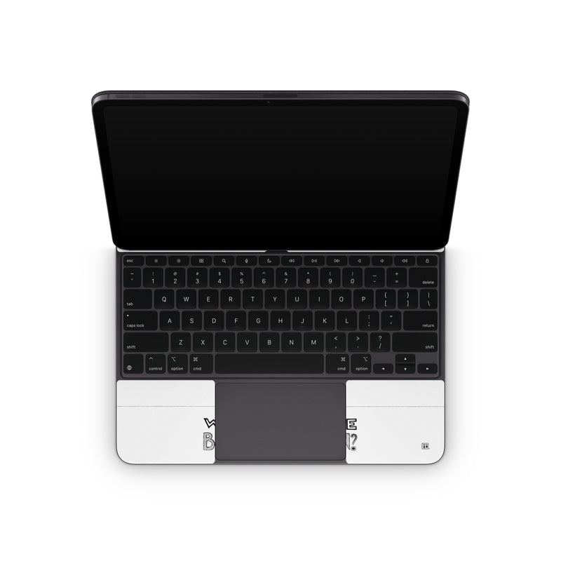 iStyles Magic Keyboard for iPad Series Skin design of Font, Poster, Illustration, with black, white colors, and tagged with people, signs, flowers, blackandwhite, funny, humor, sarcasm.