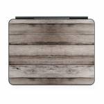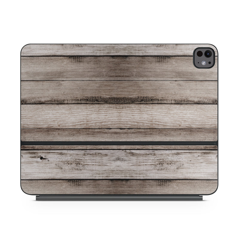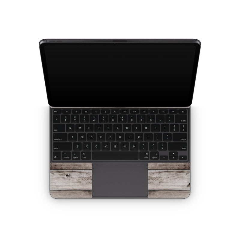 iStyles Magic Keyboard for iPad Series Skin design of Wood, Plank, Wood stain, Hardwood, Line, Pattern, Floor, Lumber, Wood flooring, Plywood, with brown, black colors, and tagged with lookslike, patterns, office.
