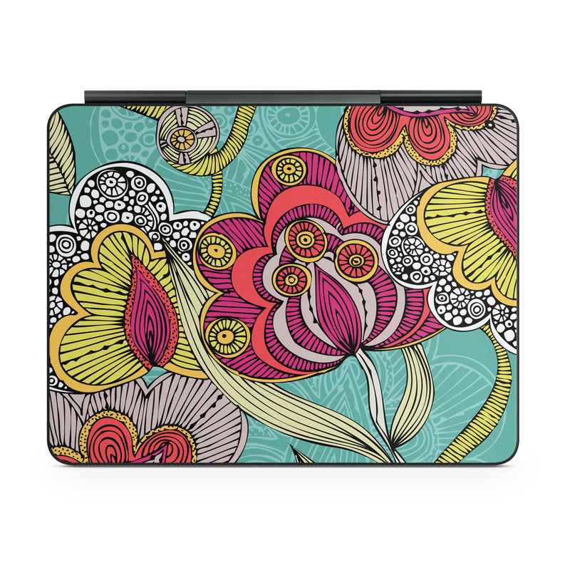 iStyles Magic Keyboard for iPad Series Skin design of Pattern, Visual arts, Motif, Floral design, Design, Art, Plant, Flower, Organism, Textile, with red, yellow, blue, gray, pink colors, and tagged with flowers.