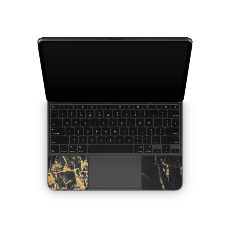 iStyles Magic Keyboard for iPad Series Skin design of Black, Yellow, Water, Brown, Branch, Leaf, Rock, Tree, Marble, Sky, with black, yellow colors, and tagged with lookslike, patterns, nature.