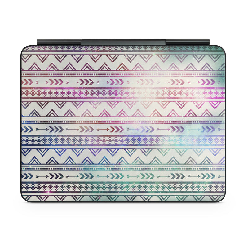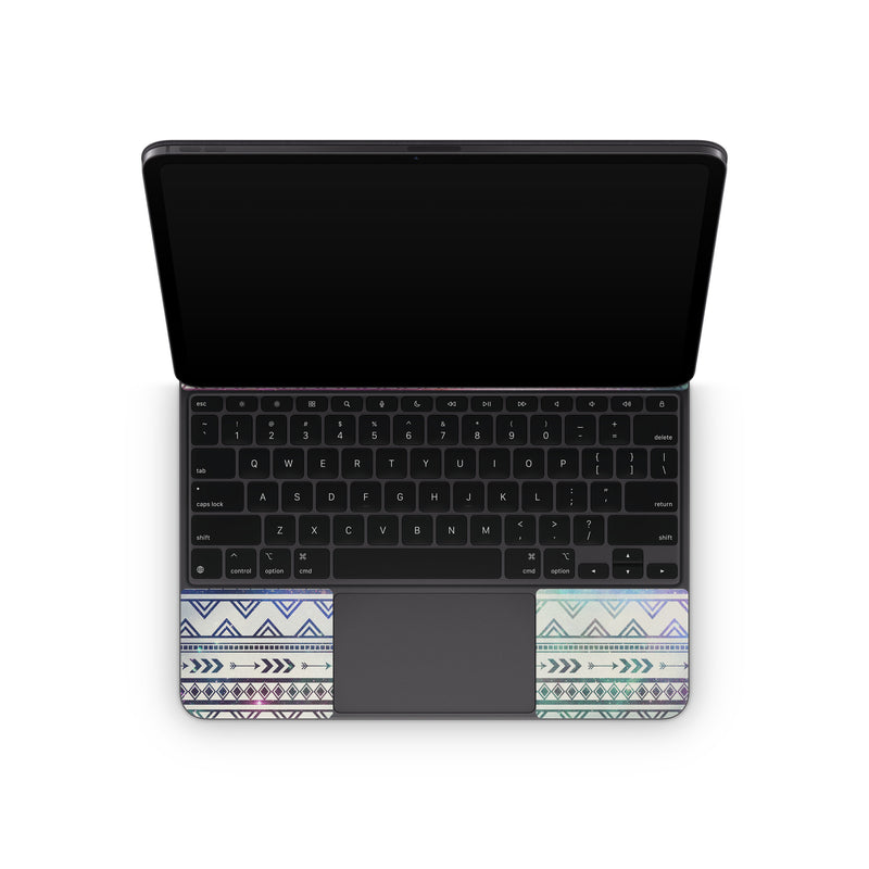 iStyles Magic Keyboard for iPad Series Skin design of Pattern, Line, Teal, Design, Textile, with gray, pink, yellow, blue, black, purple colors, and tagged with patterns.