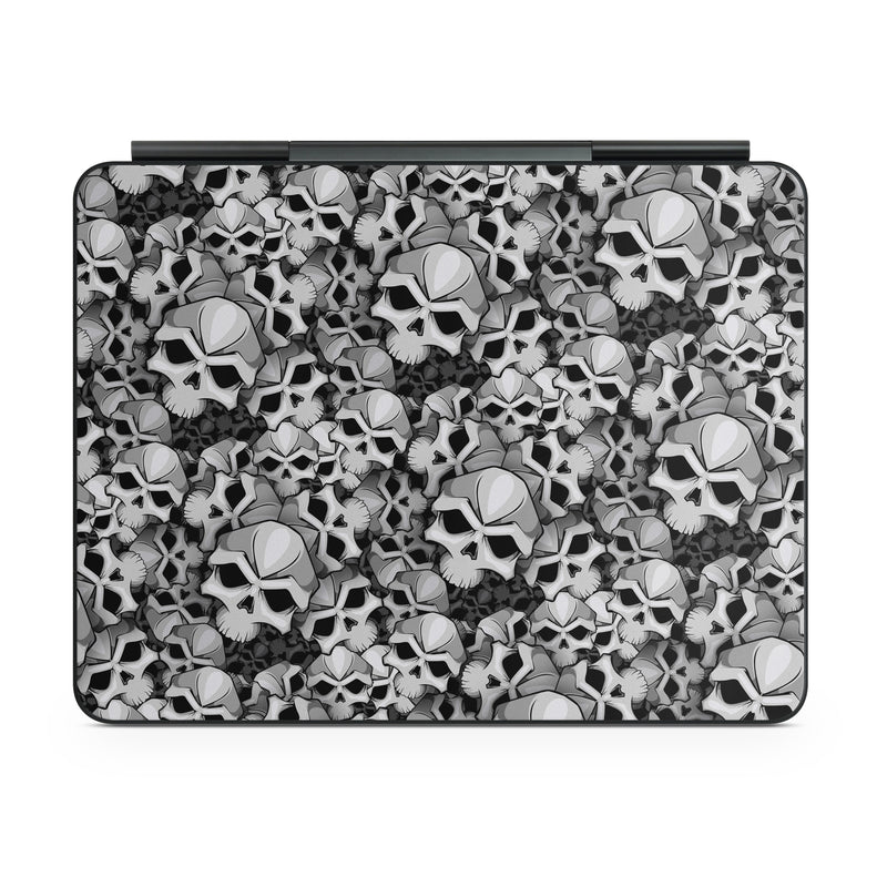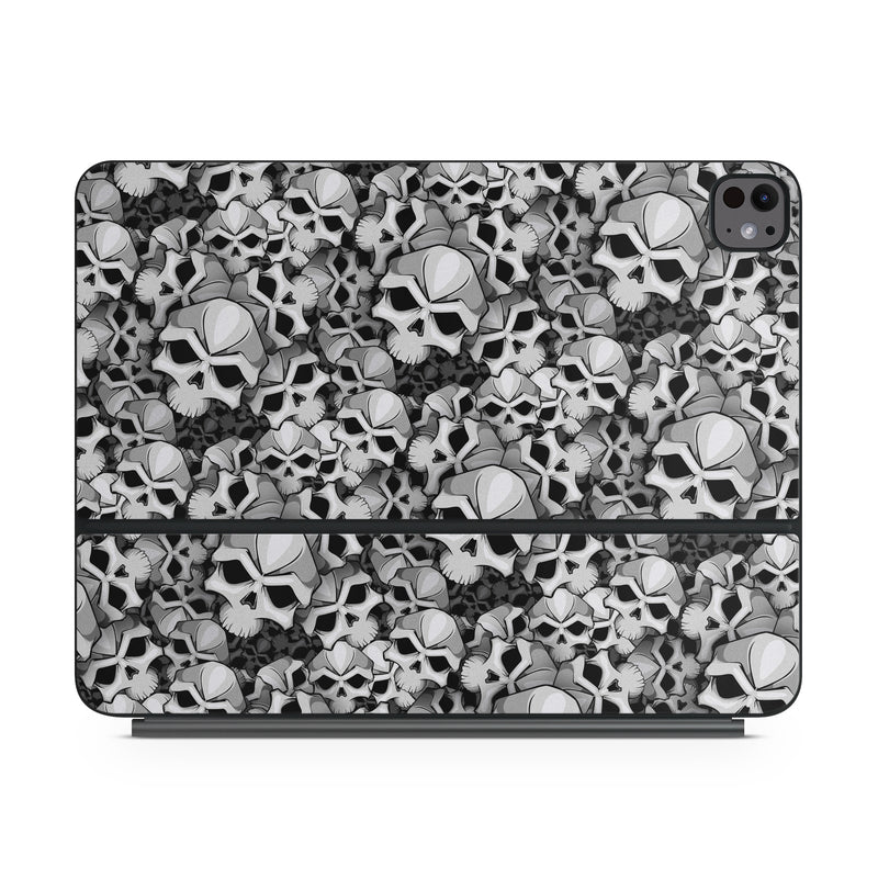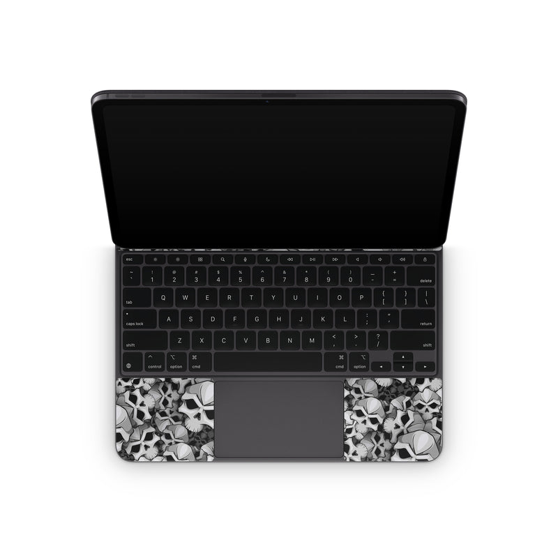 iStyles Magic Keyboard for iPad Series Skin design of Pattern, Black-and-white, Monochrome, Ball, Football, Monochrome photography, Design, Font, Stock photography, Photography, with gray, black colors, and tagged with patterns, skulls.
