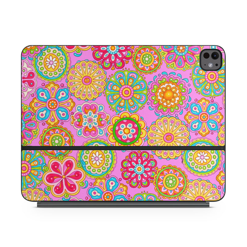 iStyles Magic Keyboard for iPad Series Skin design of Pattern, Design, Textile, Visual arts, Wrapping paper, Motif, Pedicel, with pink, red, orange, yellow, green, blue, purple colors, and tagged with flowers, patterns.