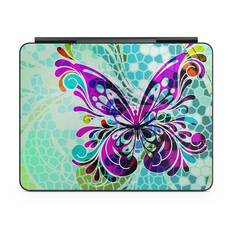 iStyles Magic Keyboard for iPad Series Skin design of Butterfly, Pattern, Insect, Moths and butterflies, Purple, Graphic design, Design, Pollinator, Visual arts, Magenta, with blue, green, purple colors, and tagged with patterns, animals.